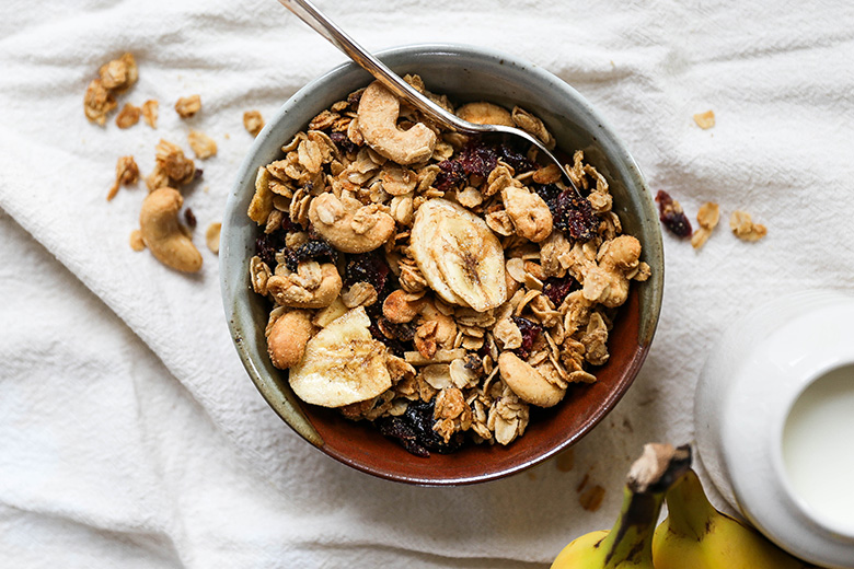 Vegan Cashew Granola with Banana Chips, Cranberries and Cacao Nibs | www.floatingkitchen.net